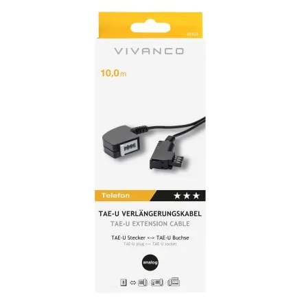 Diese hochwertige Universal TAE-U Verlängerung von VIVANCO eignet sich ideal zur Erweiterung Ihrer Telefonverbindung im Wohn- oder Arbeitsbereich. Mit 6-poligen RJ11 (4P4C) Steckern und einer Länge von 10 Metern erhalten Sie maximale Flexibilität bei der Aufstellung von Telefonen, Modems oder Zusatzgeräten. Das Kabel ist kompatibel mit TAE-F und TAE-N Anschlüssen und bietet dank der robusten Ausführung eine zuverlässige Verbindung ohne Signalverluste. Ideal für universelle Anwendungen im privaten wie auch im professionellen Bereich.